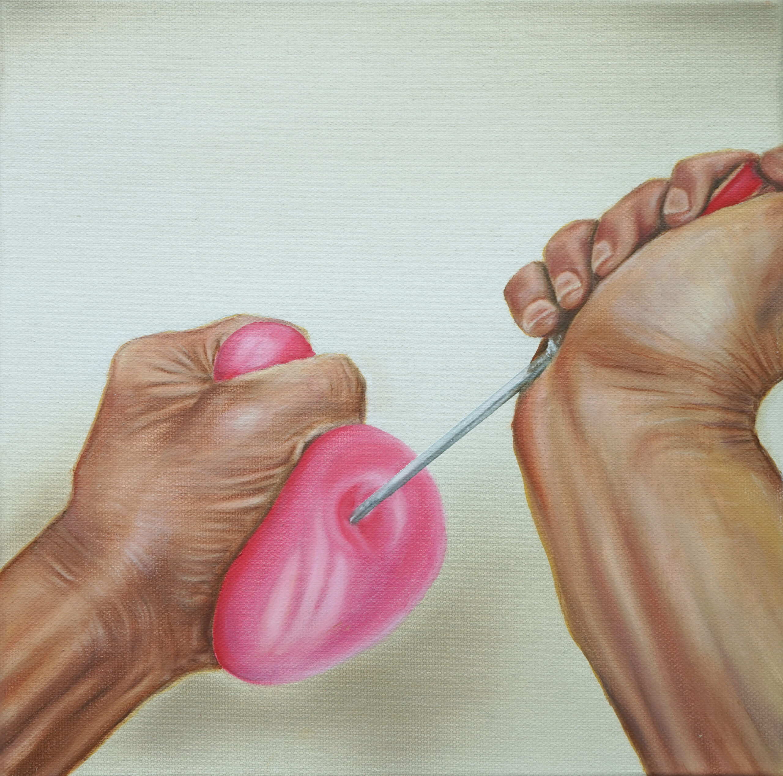 Die gesellschaftskritische Auseinandersetzung des Künstlers mit Fleischkonsum, Umgang mit Tieren, deren Auswirkungen und der massive Bezugsverlust zur Herkunft unserer Nahrung beeinflusste diese Arbeit. „Der bewusst provozierte eingeschränkte Blick zeigt dem Konsumenten nur ein kleines, viereckiges Stück Fleisch, schön verpackt, Bestpreis konditioniert und vermarktet im sterilen Kühlregal. Was für ein zerstörerischer und würdeloser Zustand!“ Wie wäre es wohl, wenn wir die Tiere, die wir nutzen, selbst töten müssten? Fleisch bedeutet für den Künstler nicht nur Nahrung, er betrachtet es auch als einen Teil von uns selbst. Unsere Muskeln, unser Blut, die Adern sind archaische Bestandteile des Menschseins. Hörtnagl sieht die künstlerische Darstellung des Fleisches in seiner Tiefe und Oberflächlichkeit symbolisch für jeglichen unbewussten und verschwenderischen Umgang mit uns und unseren Ressourcen. Somit kann diese Darstellung ähnlich oder genauso auch auf andere Lebensmittelproduktionen, Bekleidungsindustrien, Rohstoffgewinnung und Umweltressourcen aber auch für Medien, Politik und Bildung und schlussendlich der Umgang mit unseren eigenen persönlichen Ressourcen umgelegt werden.